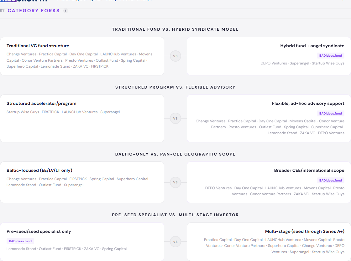 Explore the full BADideas.fund positioning landscape analysis - interactive competitor analysis, territory maps, and strategic actions: available here.